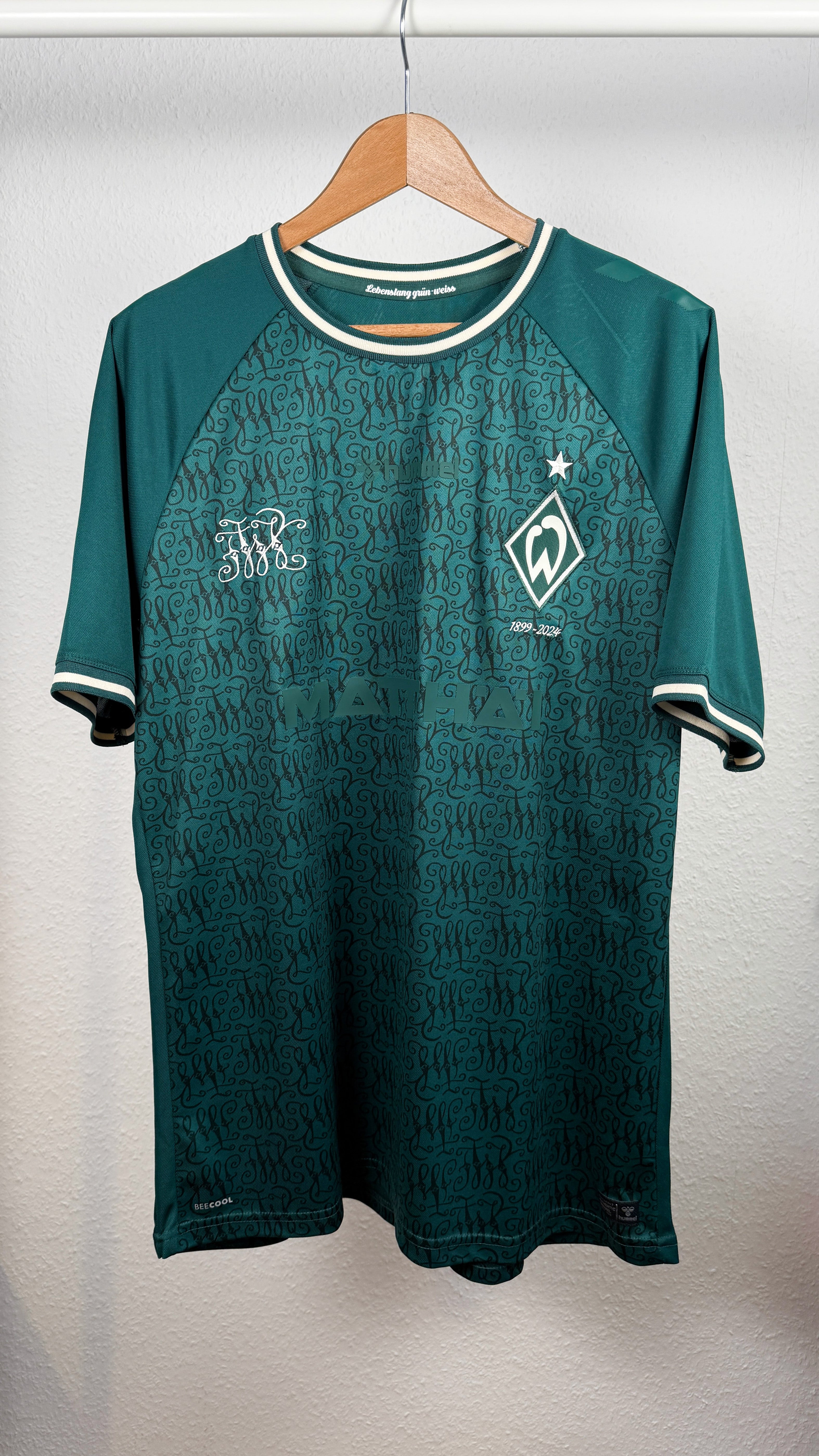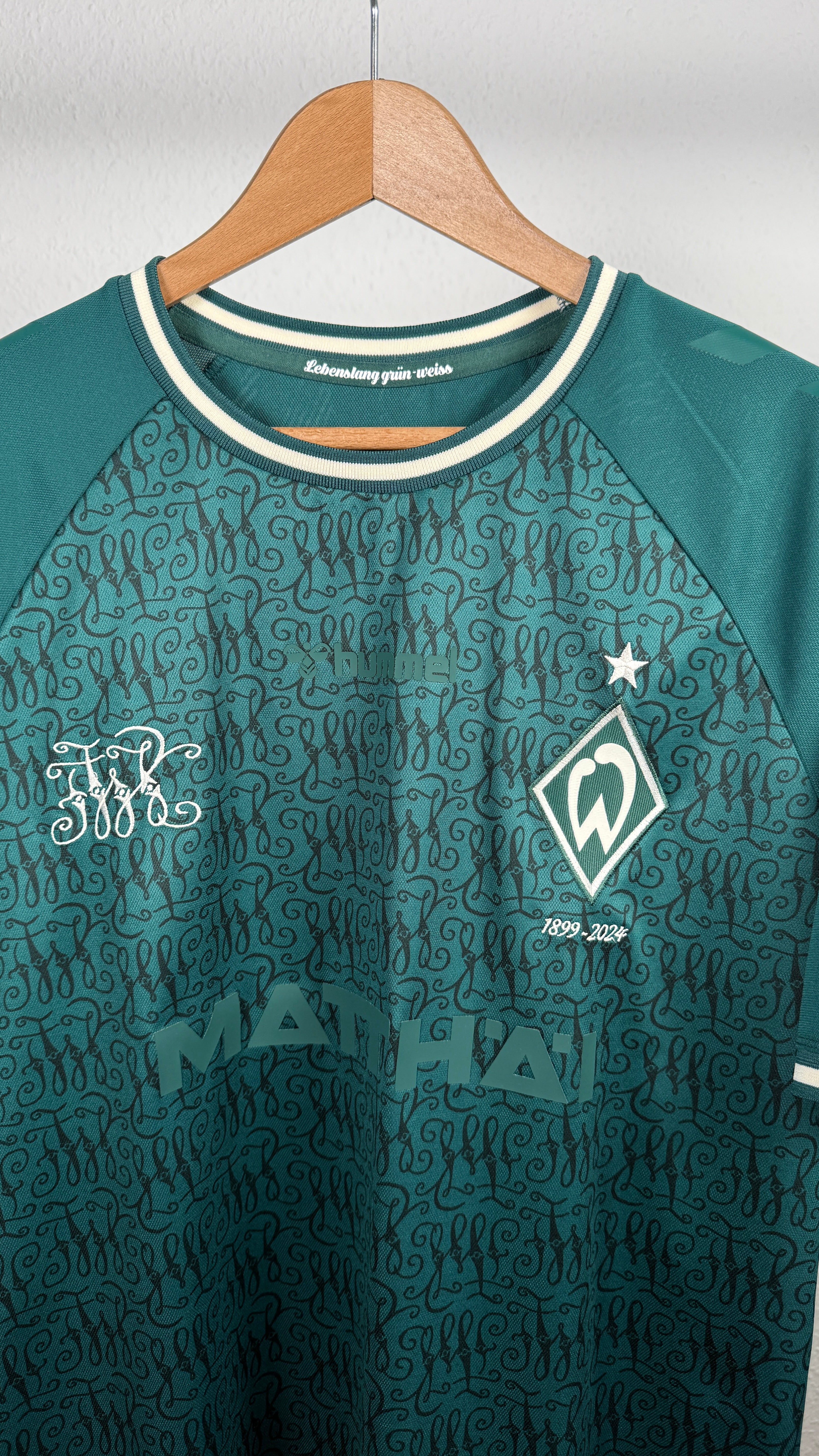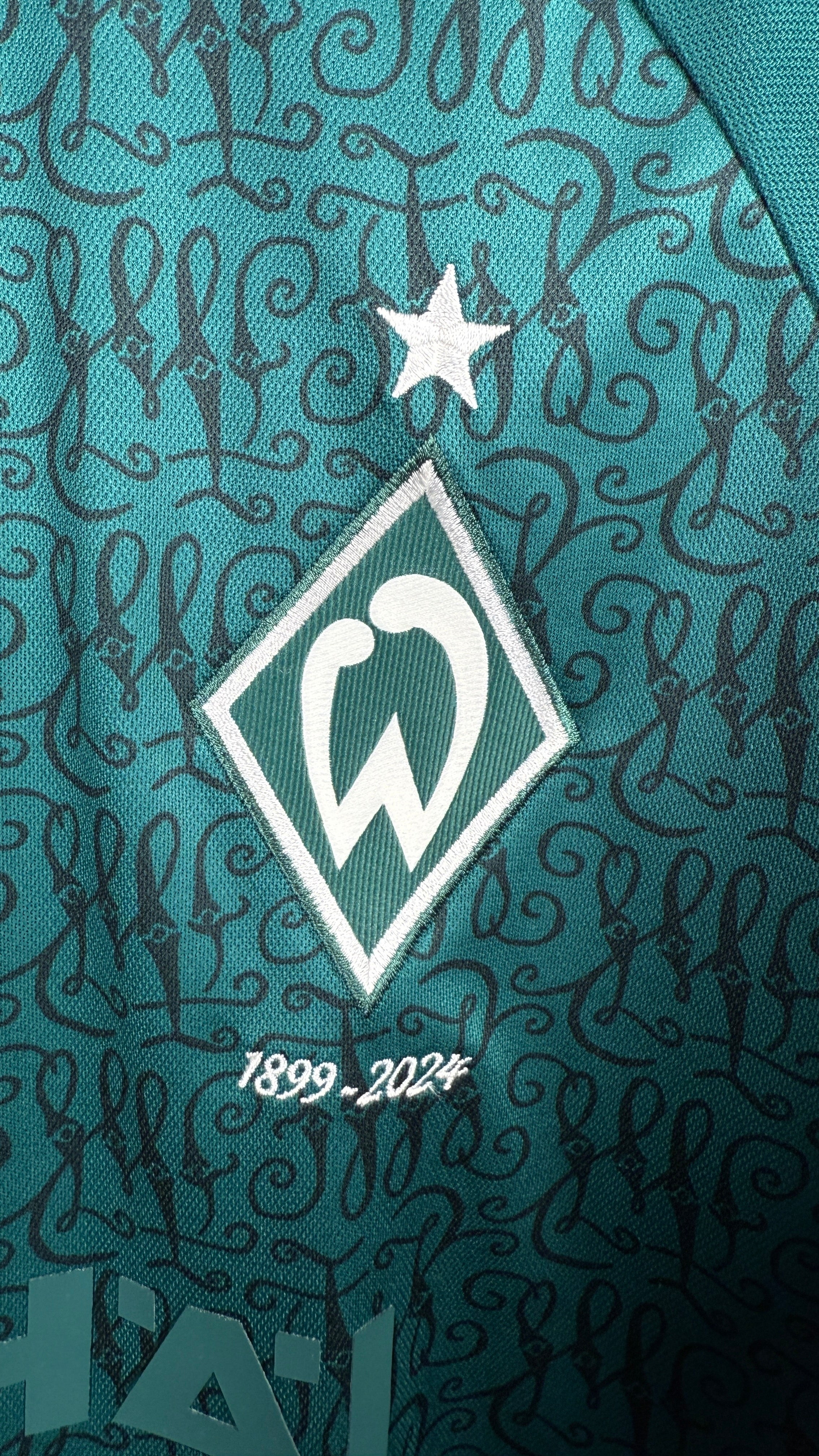 BESONDERHEITEN – Modernes Werder-Bremen-Jubiläumstrikot aus der Saison 2023/24 mit originalem Lynen-Flock.