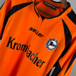 BESONDERHEITEN – Seltenes drittes Trikot von Arminia Bielefeld aus der Bundesliga-Saison 2007/08. Mit Krombacher-Sponsor und klassischem Saller-Design, Rarität für Sammler, da dritte Trikots oft nur in wenigen Spielen getragen wurden.