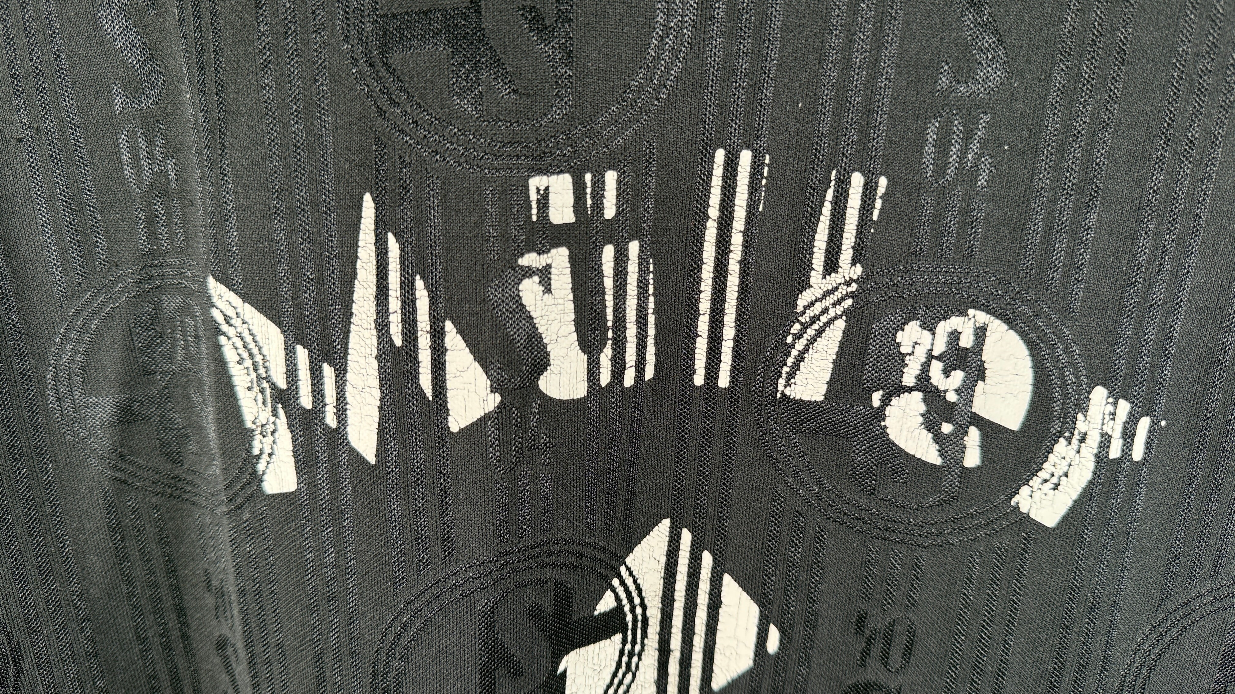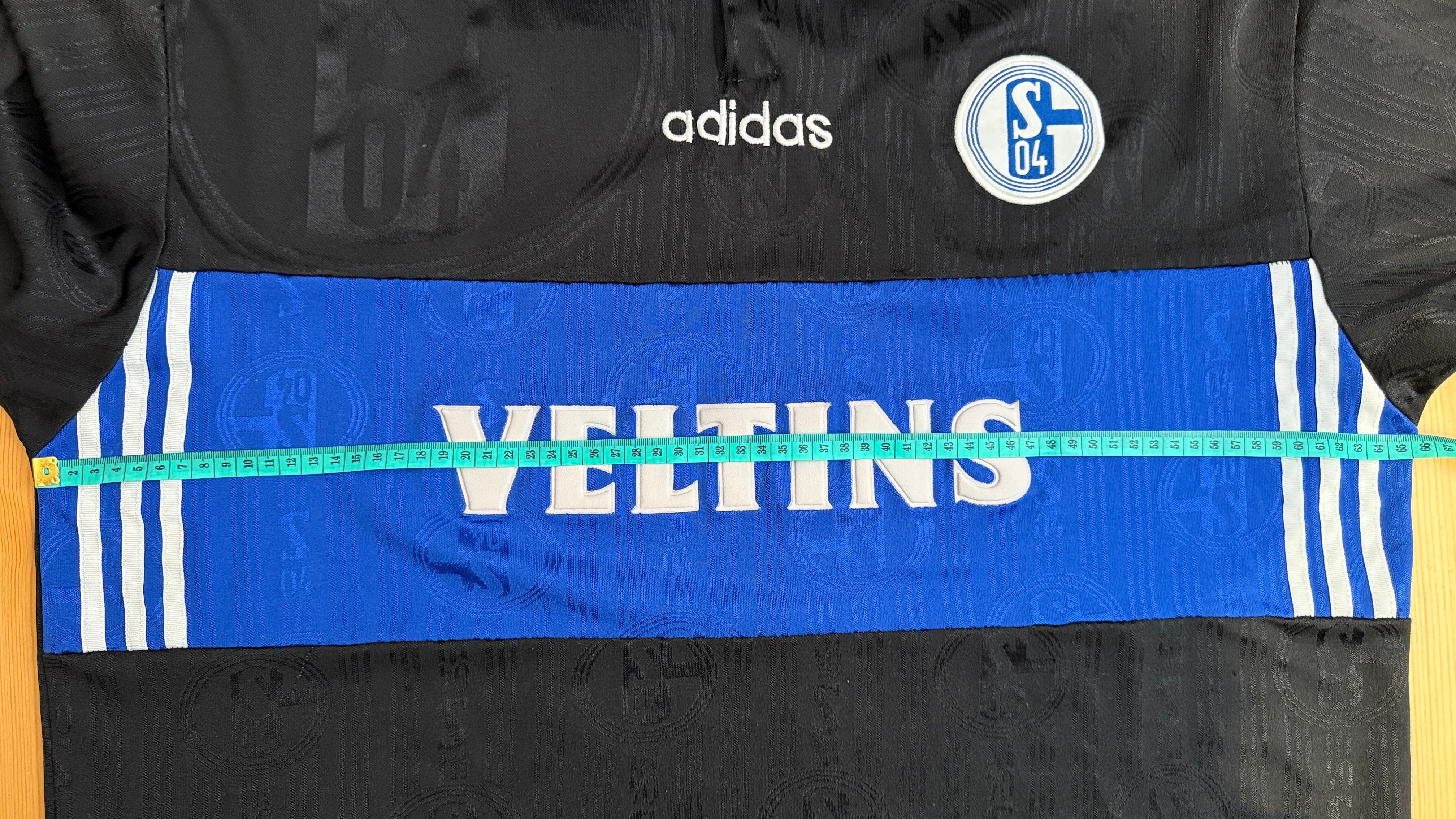 BESONDERHEITEN – Ikonisches Schalke-Ausweichtrikot aus den späten 90ern, getragen über zwei Spielzeiten (97/98 & 98/99). Schwarzes Design mit königsblauem Brustring, 3-Streifen an der Seite und eingewebten S04-Logos im Jacquard-Stoff. Mit originaler Beflockung von Müller #6 – ein echter Hingucker und absolutes Sammlerstück der Veltins-Ära.