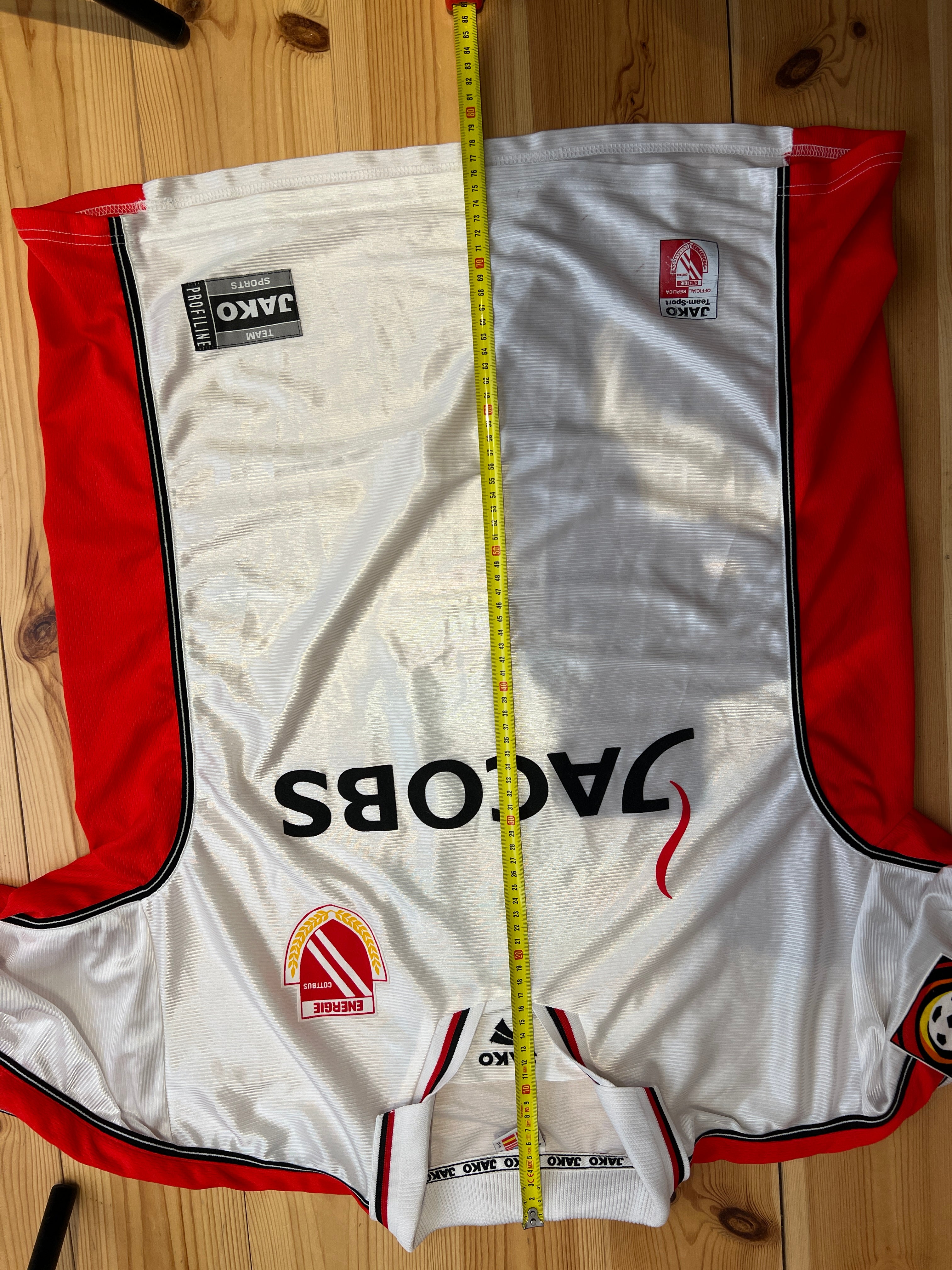 Besonderheiten: Original Matchworn Trikot aus der Saison 2000/01 von Energie Cottbus mit dem Flock Jacobs. Das Trikot wurde von Lisztes Krisztián, einem ungarischen Fußballspieler, erworben, der es am Ende des Spiels mit Sebook tauschte. Ein echtes Sammlerstück für Fans von Energie Cottbus.