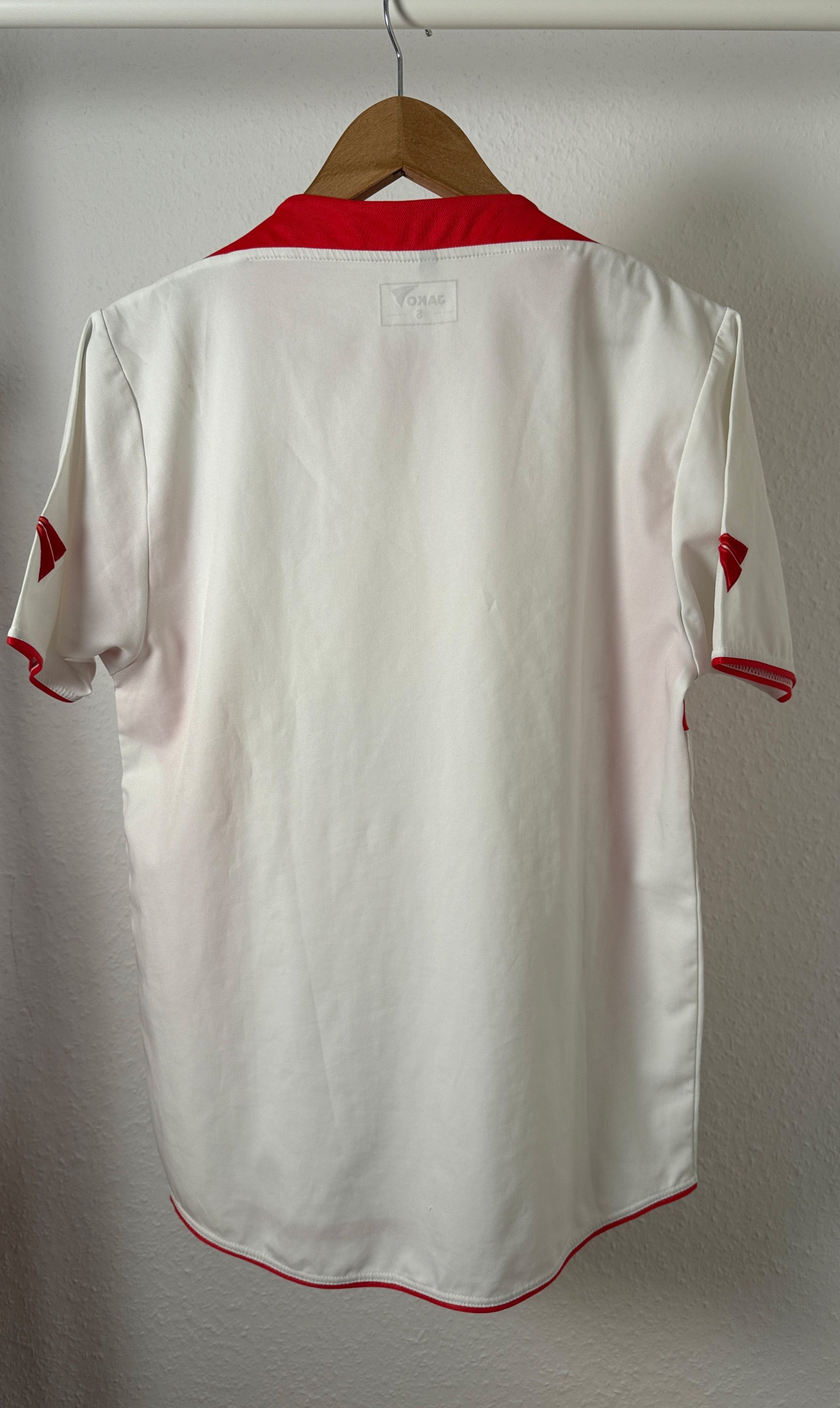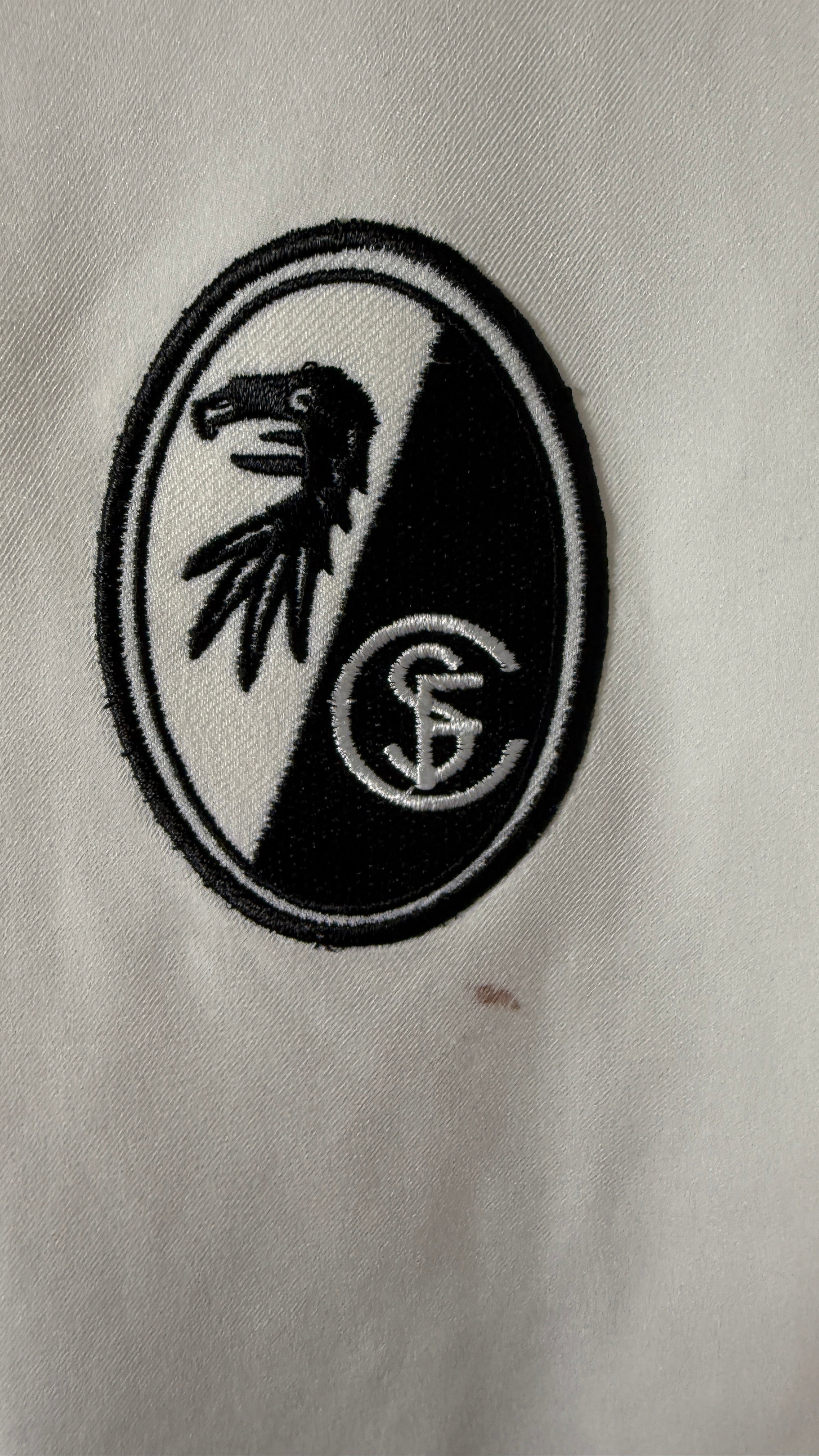 Klassisches Auswärtstrikot des SC Freiburg aus der Saison 2005/06, hergestellt von Jako. Mit markantem Suzuki-Sponsor und typisch schlichtem Freiburg-Design dieser Zeit. Seltene kleine Größe S und in sehr gutem Zustand – perfekt für Sammler.