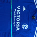 Besonderheiten: Klassisches Heimtrikot der frühen 2000er-Jahre in Königsblau mit weißem Kragen und Victoria-Sponsor. Getragen u. a. von Spielern wie Ebbe Sand, Jörg Böhme und Tomasz Wałdoch.