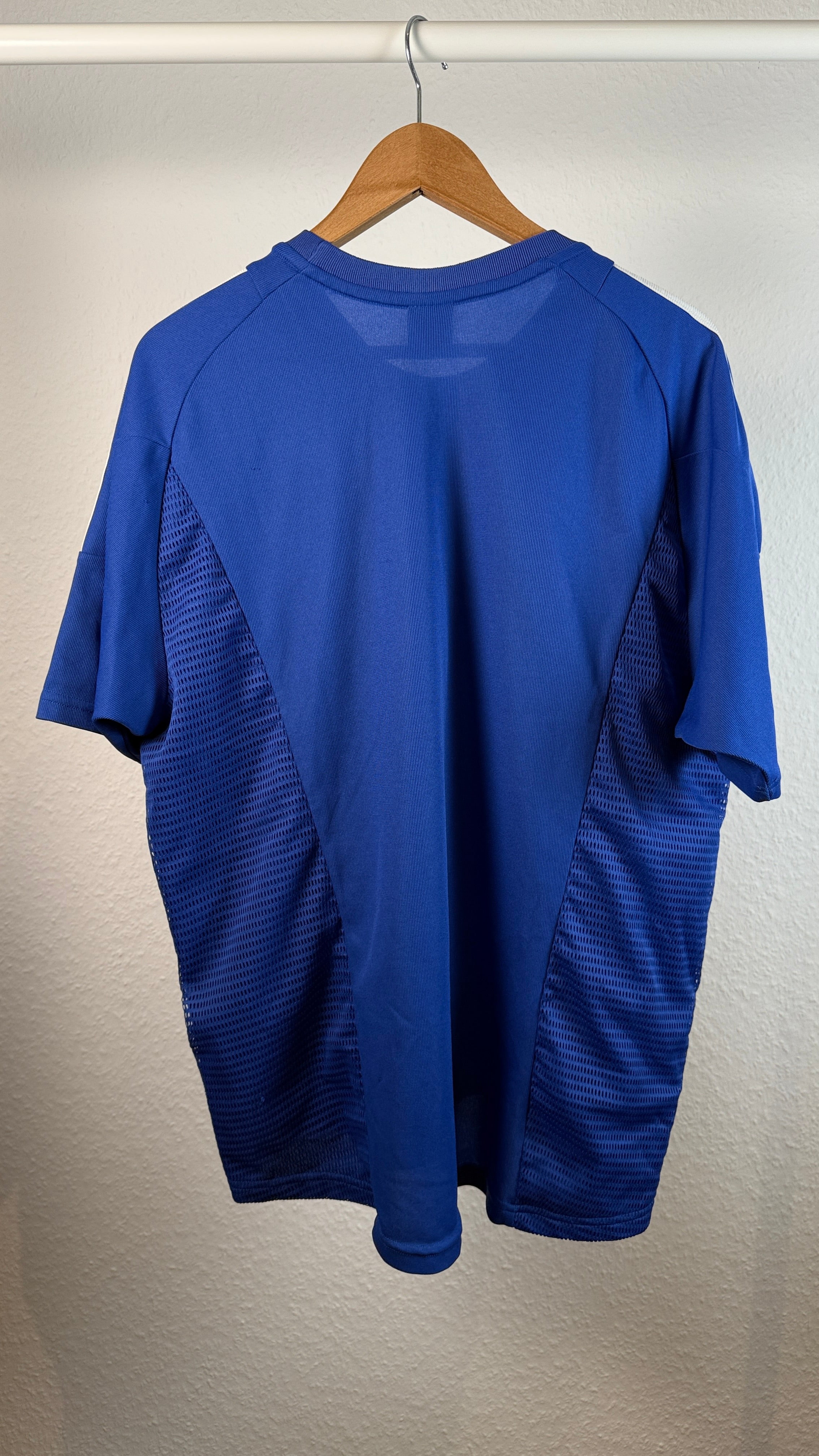 Besonderheiten: Klassisches Heimtrikot der frühen 2000er-Jahre in Königsblau mit weißem Kragen und Victoria-Sponsor. Getragen u. a. von Spielern wie Ebbe Sand, Jörg Böhme und Tomasz Wałdoch.