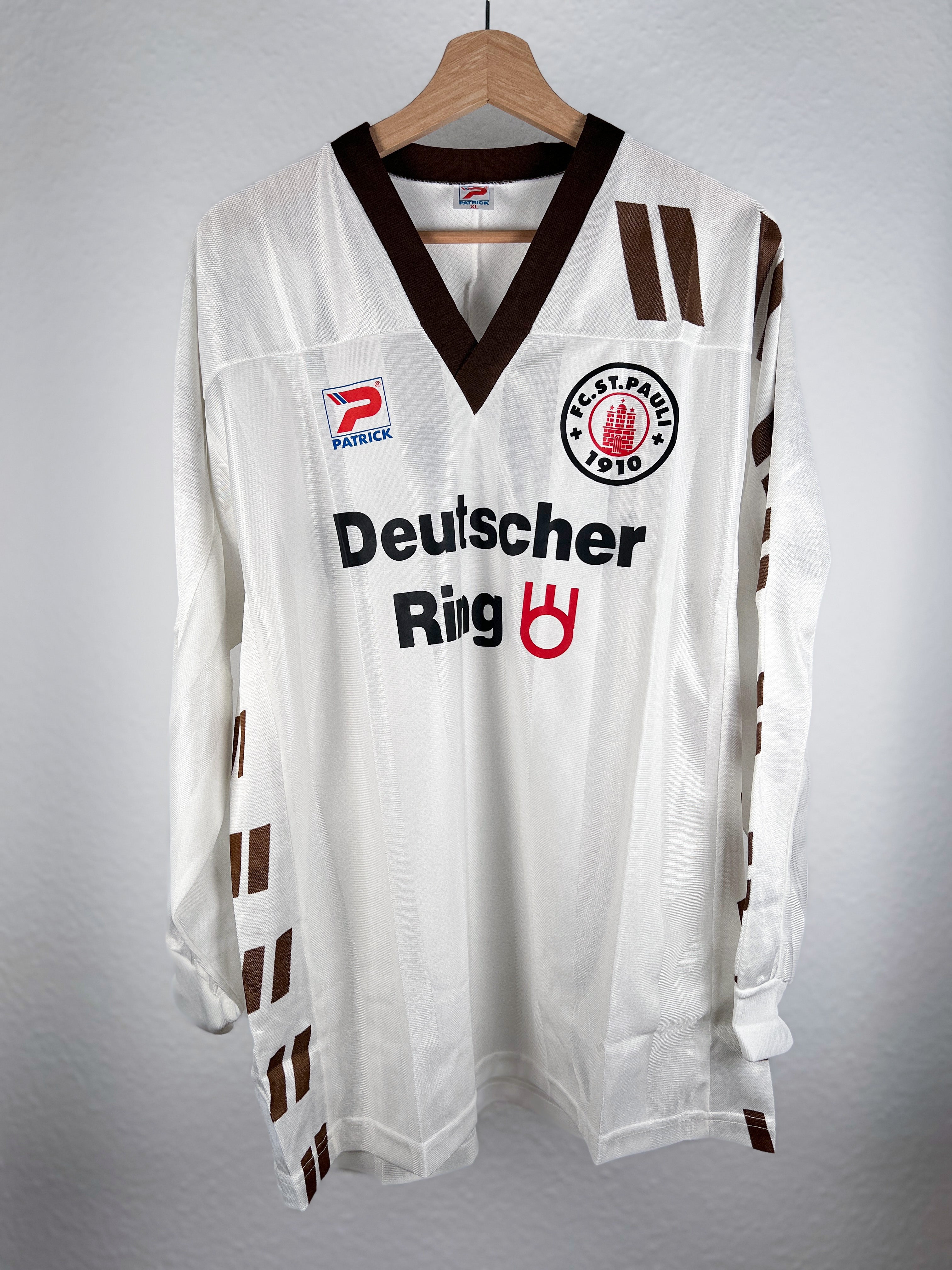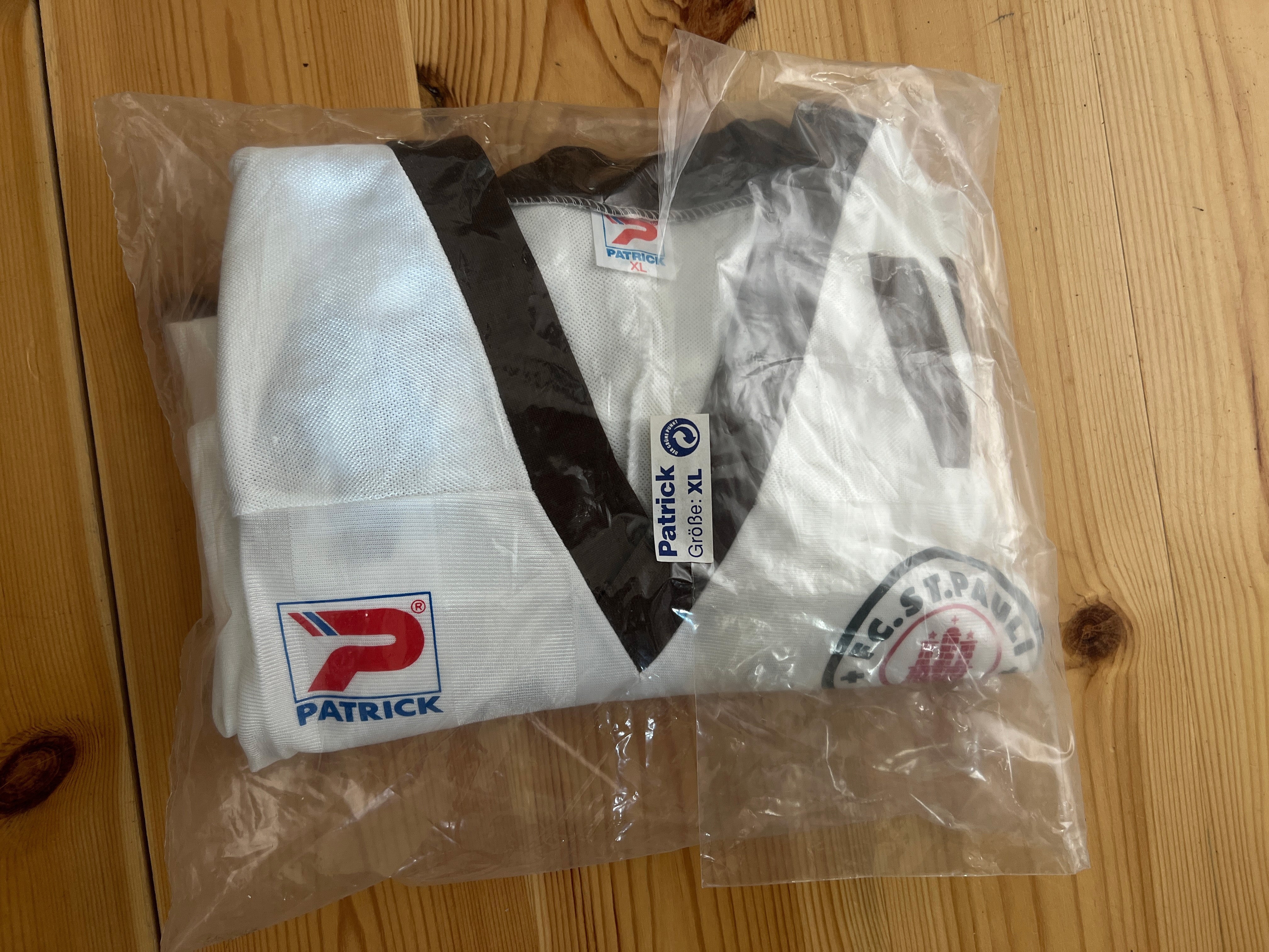 FC St. Pauli Auswärtstrikot aus der Saison 1992/93, hergestellt vom Ausrüster Patrick. Das Trikot ist neu und originalverpackt, ein echtes Stück Vereinsgeschichte!