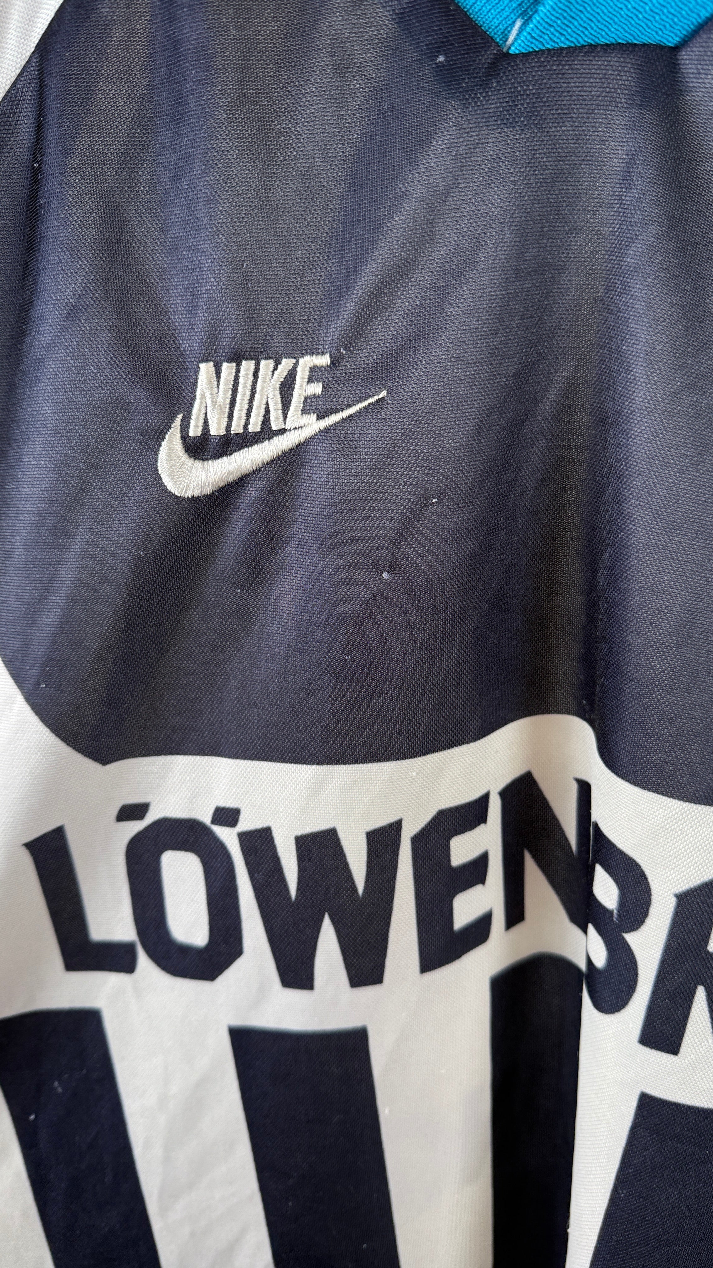 Besonderheiten: Klassisches 90er-Auswärtstrikot der „Löwen“ mit ikonischem Löwenbräu-Sponsor. Getragen in einer starken Bundesliga-Saison unter Trainer Werner Lorant. Seltene Rarität für Fans und Sammler.