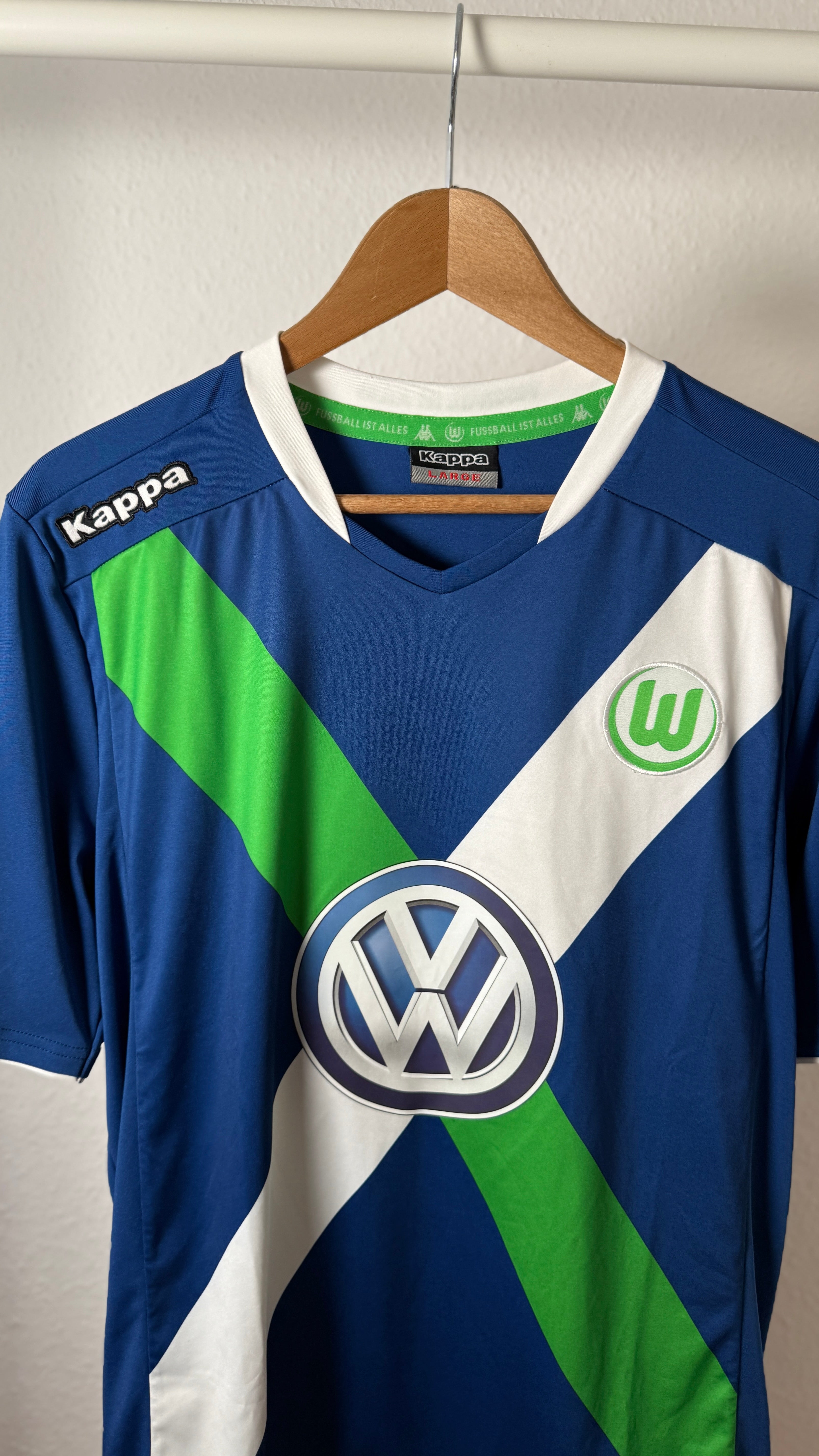 Original VfL Wolfsburg 3rd Trikot aus der Saison 2014/15 von Kappa mit Vierinha. Modernes Dritttrikot und ein starkes Sammlerstück für Wolfsburg-Fans und Trikot-Sammler.