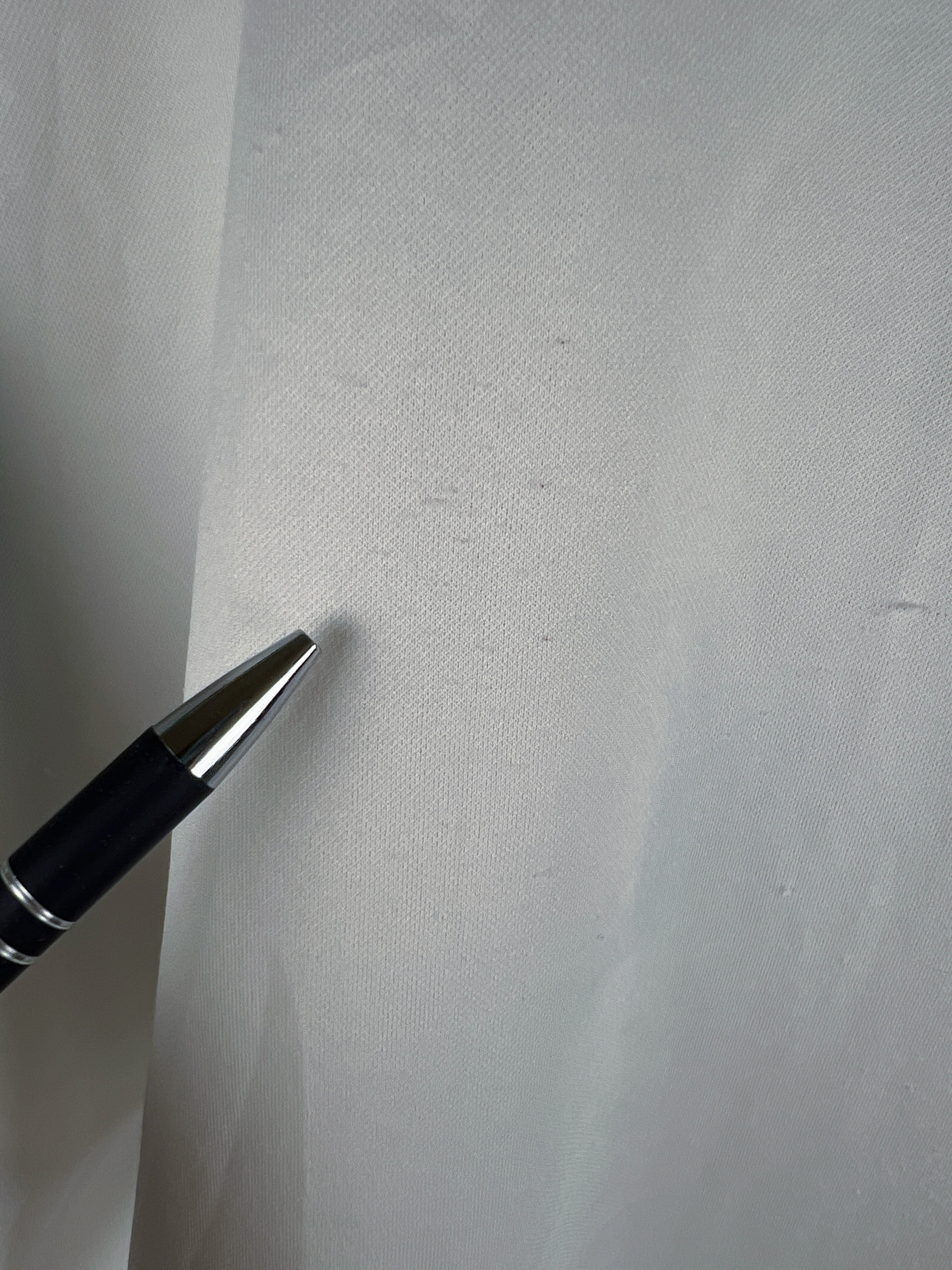 Einige kleine Ziehfäden und minimale Stoffunregelmäßigkeiten (siehe Detailbilder)