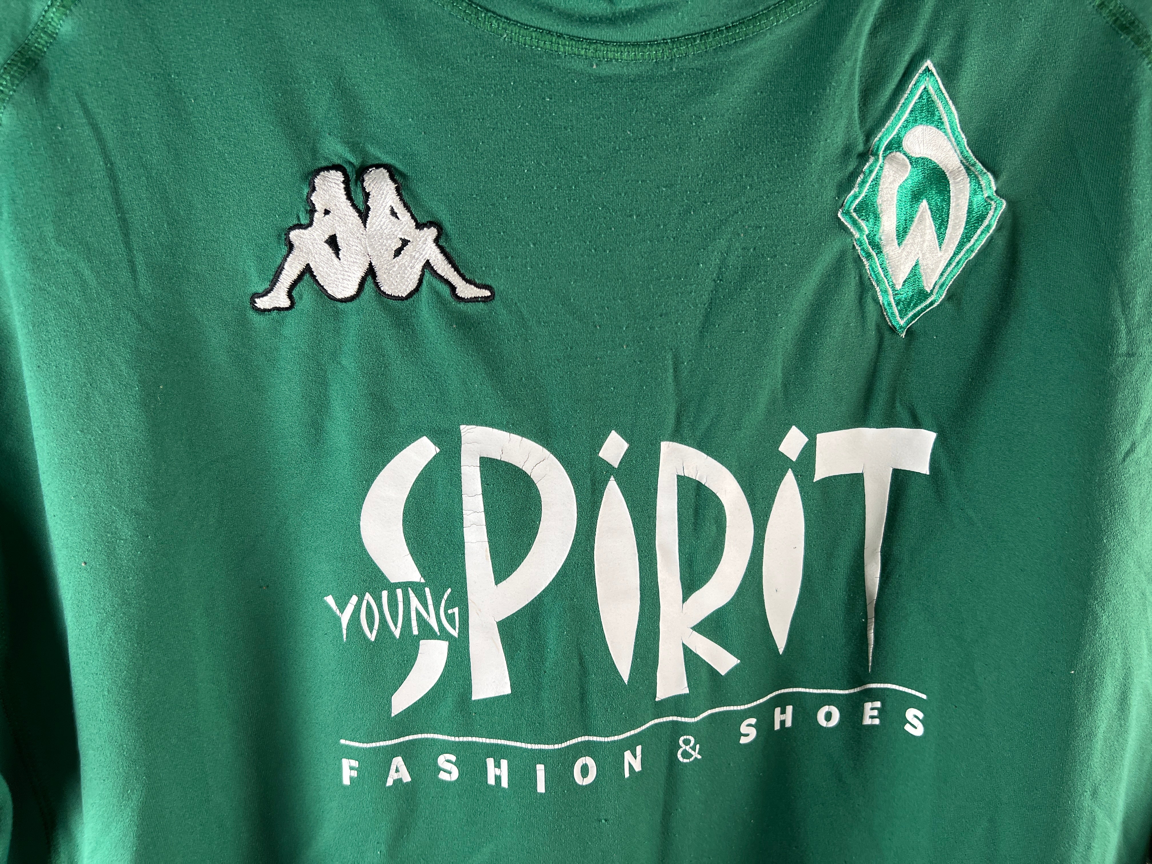 Besonderheiten: Original Auswärtstrikot von Werder Bremen aus der Saison 2002/03 mit dem Flock von Ailton (#32), einem der bekanntesten Spieler des Vereins, und dem seltenen Young Spirit Sponsor. Ein echtes Sammlerstück für Werder Bremen-Fans und Ailton-Liebhaber.