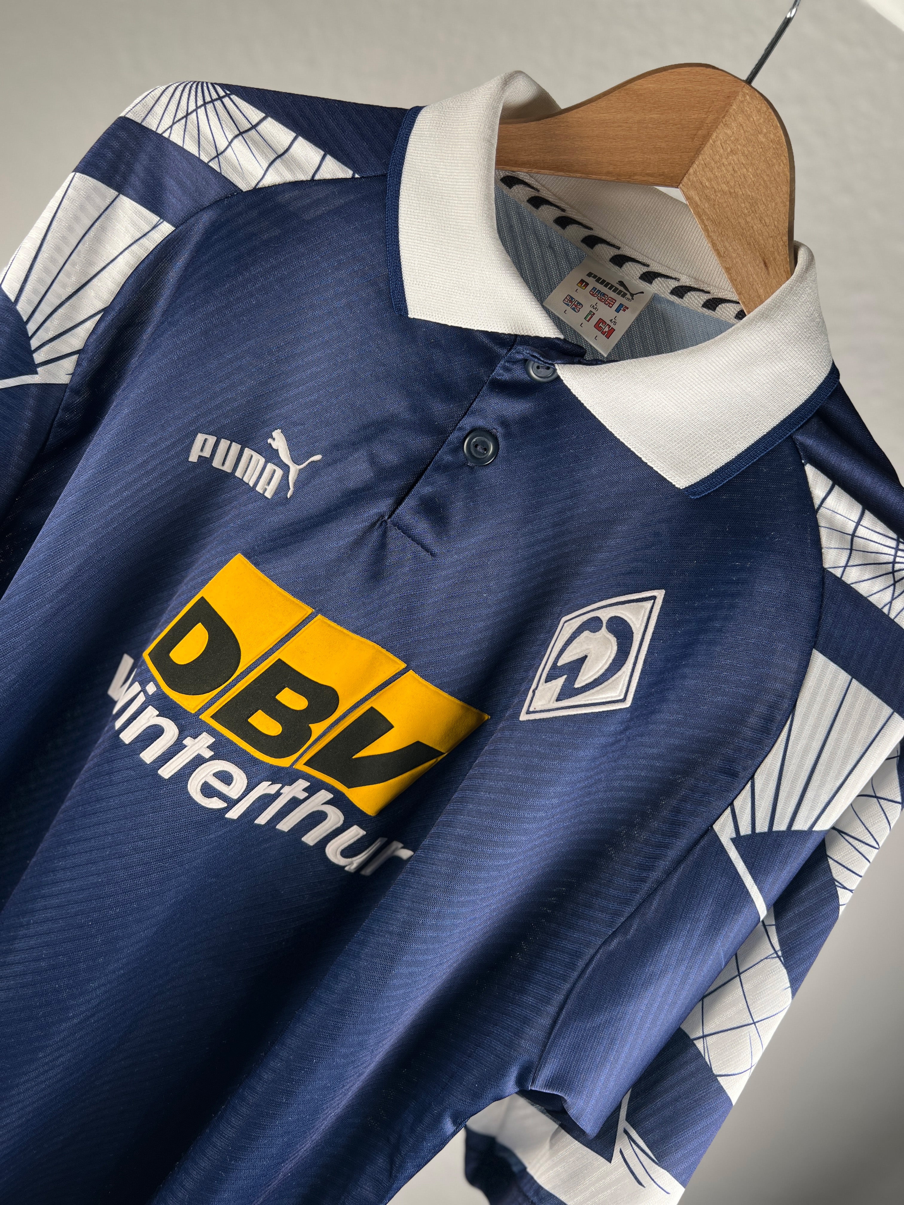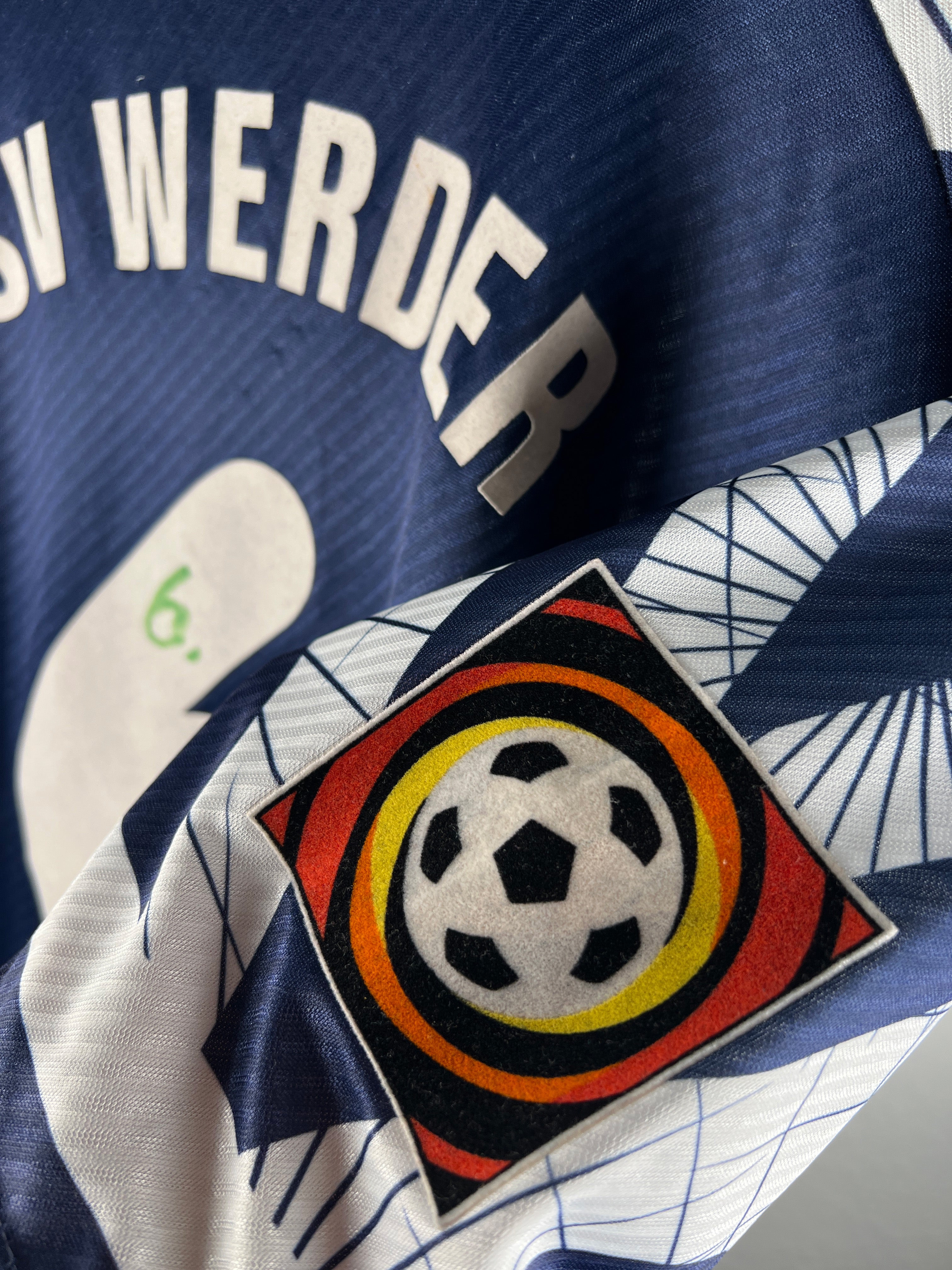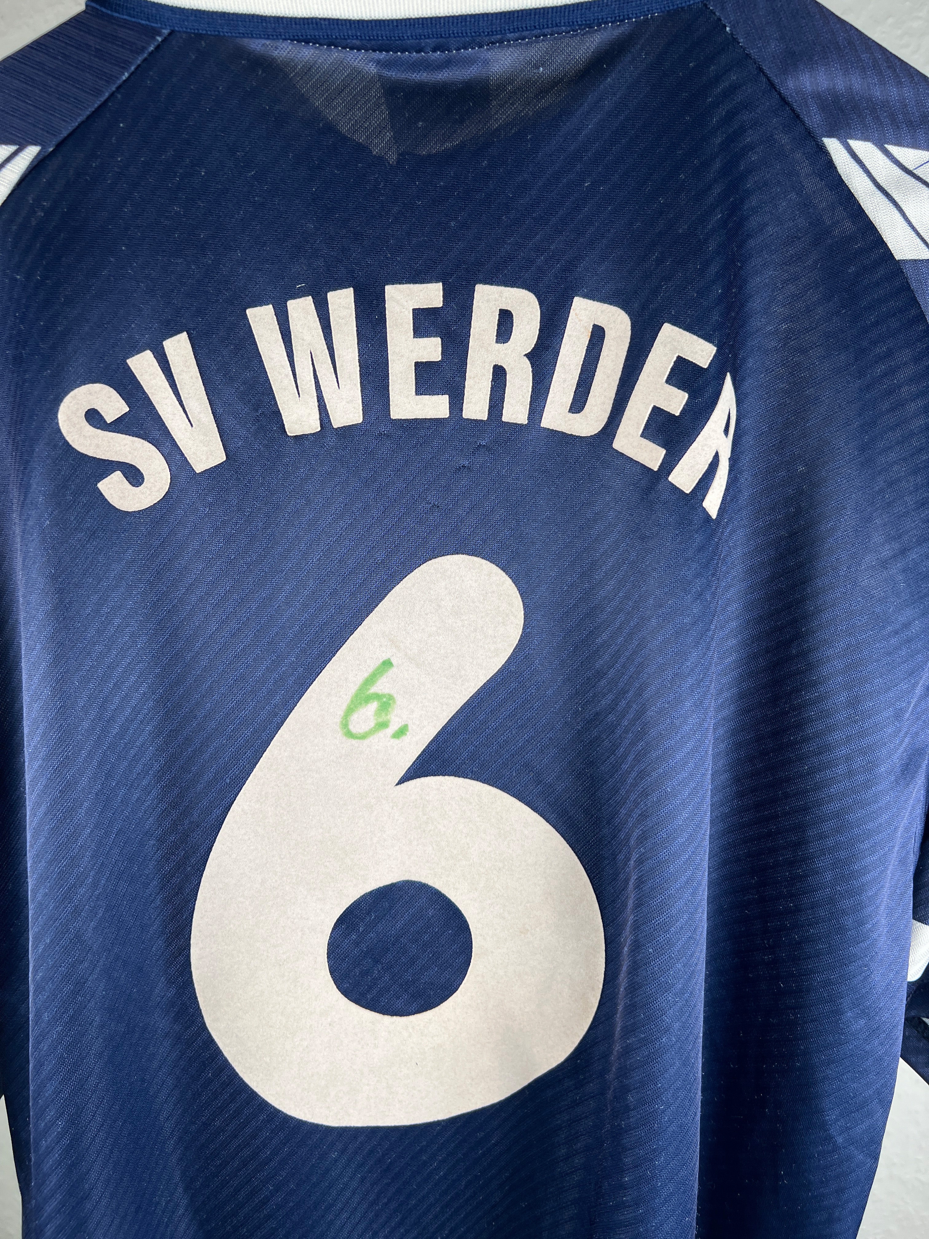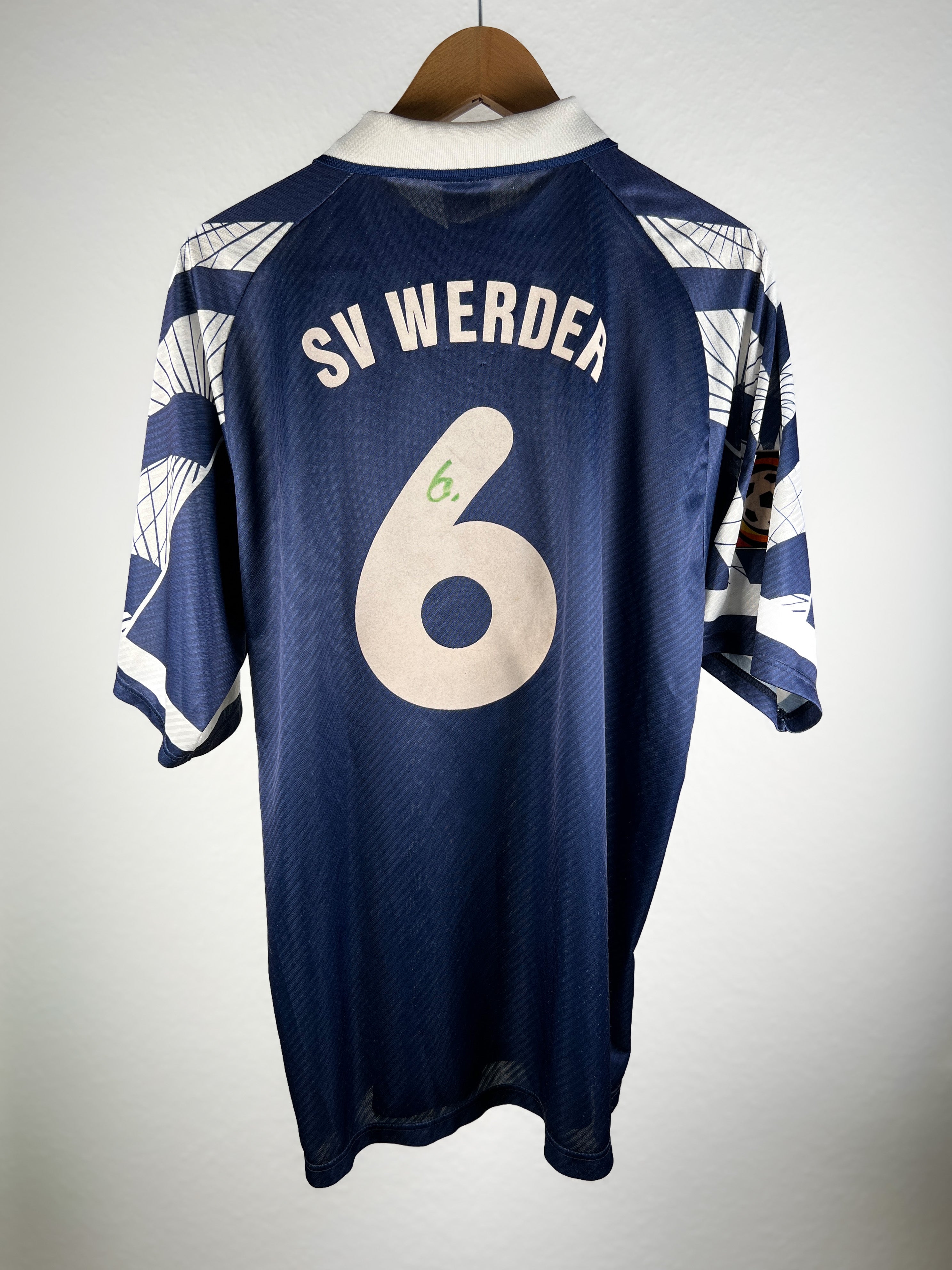 Besonderheiten: Seltenes Auswärtstrikot der Saison 1996/97. Rückennummer 6 – unter dieser Nummer spielte Jens Todt. Originaler großer Rückenflock. Sehr schwer in dieser Größe und in diesem Zustand zu finden!