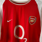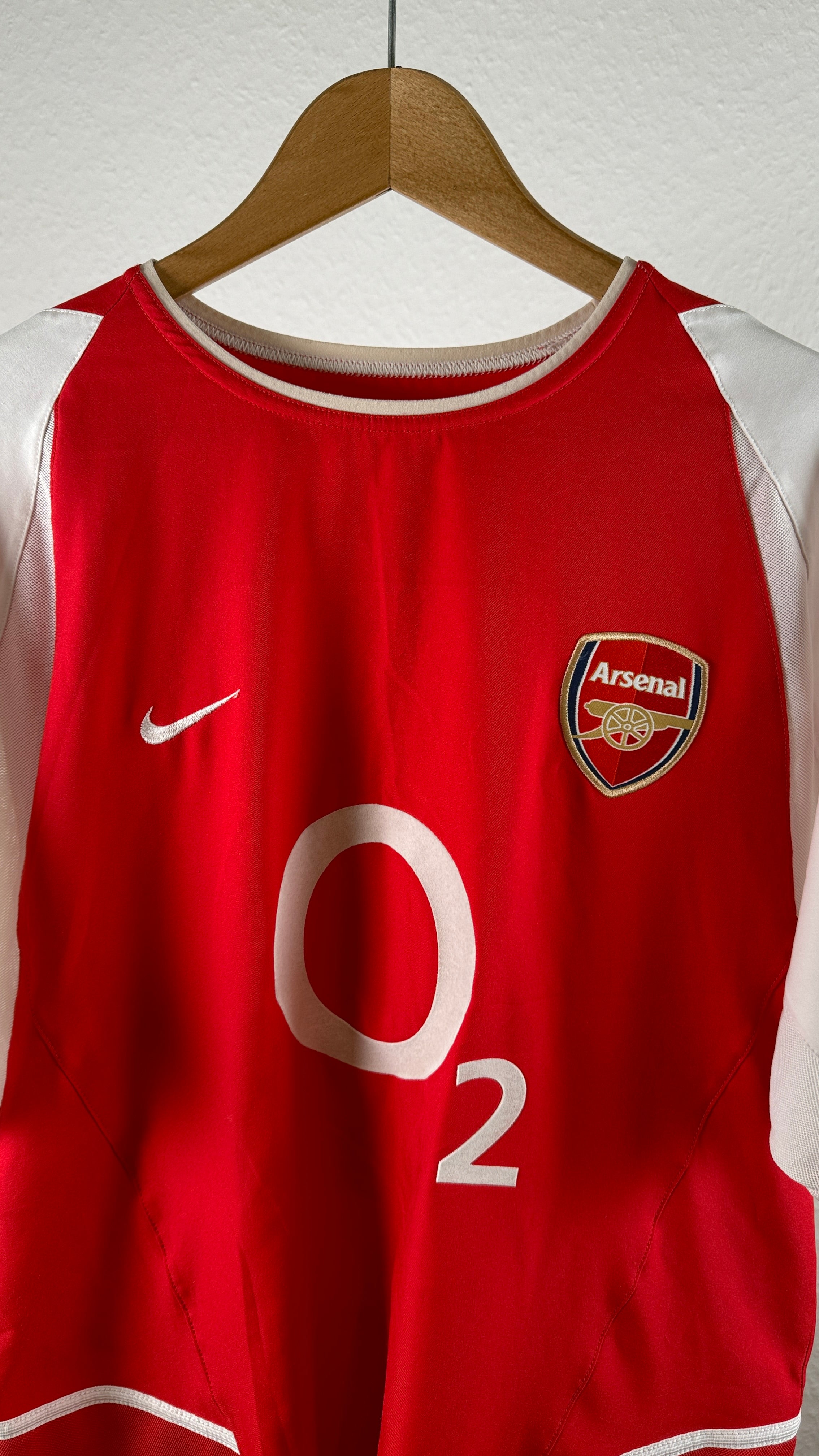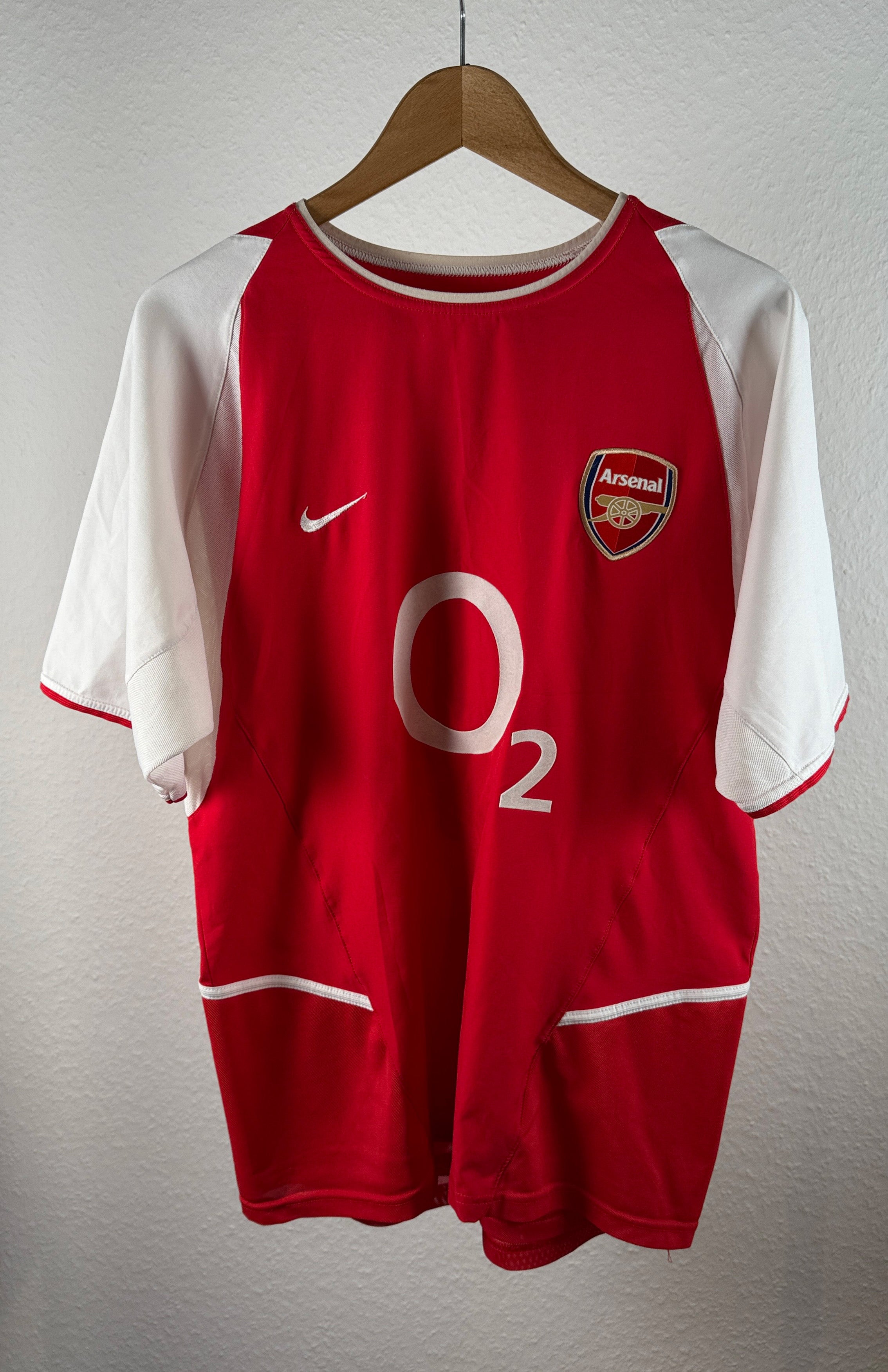 BESONDERHEITEN – Kultiges Heimtrikot der Gunners aus der Saison 2002/03 mit originalem Flock von Patrick Vieira #4. Klassisches Nike-O2-Design, getragen in der legendären Highbury-Ära. Vieira war das Herzstück von Arsenals Mittelfeld – ein absolutes Sammlerstück für Fans der „Invincibles“-Generation.