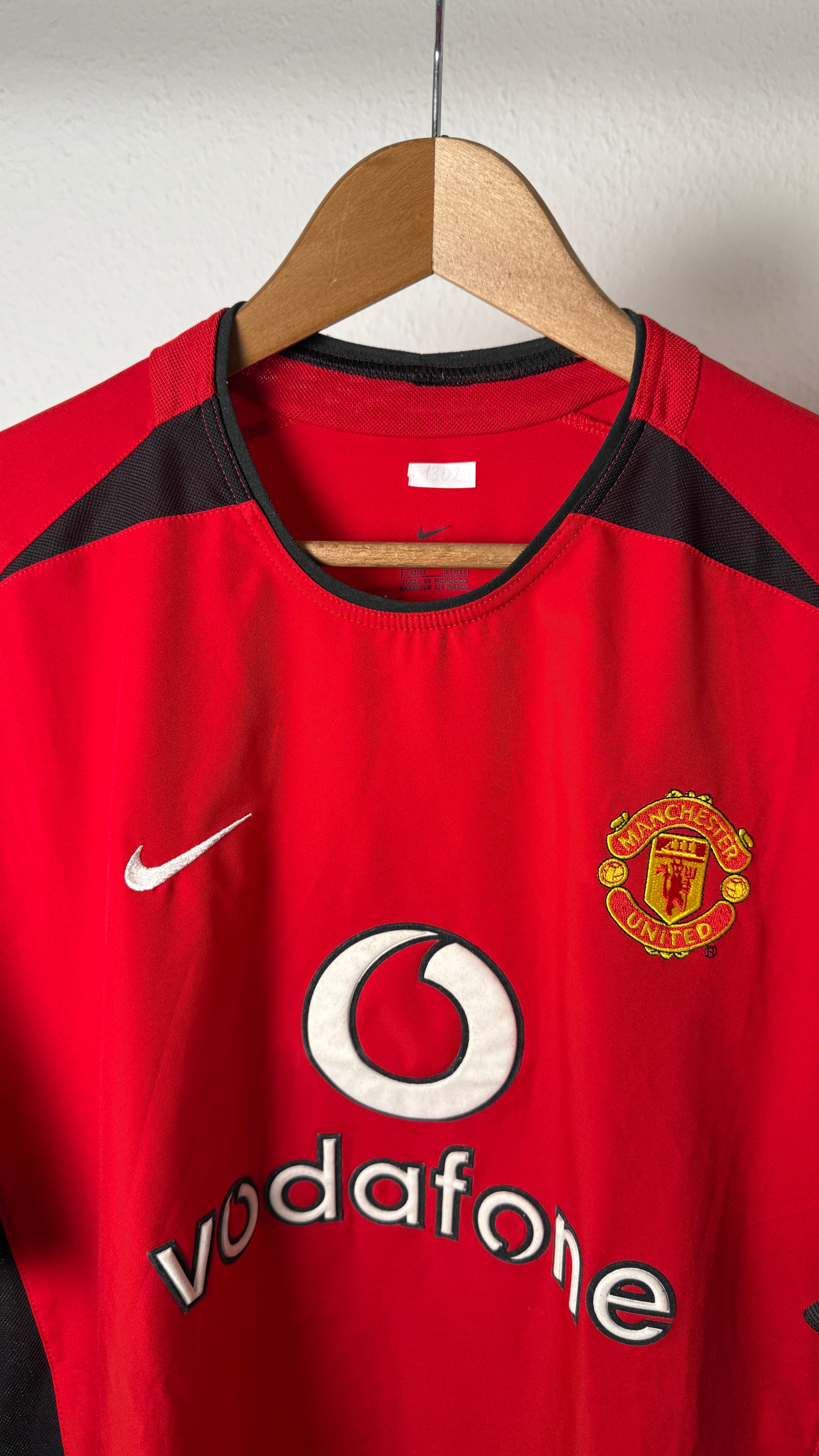 Original Heimtrikot von Manchester United aus der Saison 2002/03 mit dem legendären Flock von David Beckham (#7). Letzte Premier-League-Saison von Beckham bei United – ein extrem begehrtes Sammlerstück aus der frühen 2000er-Ära.