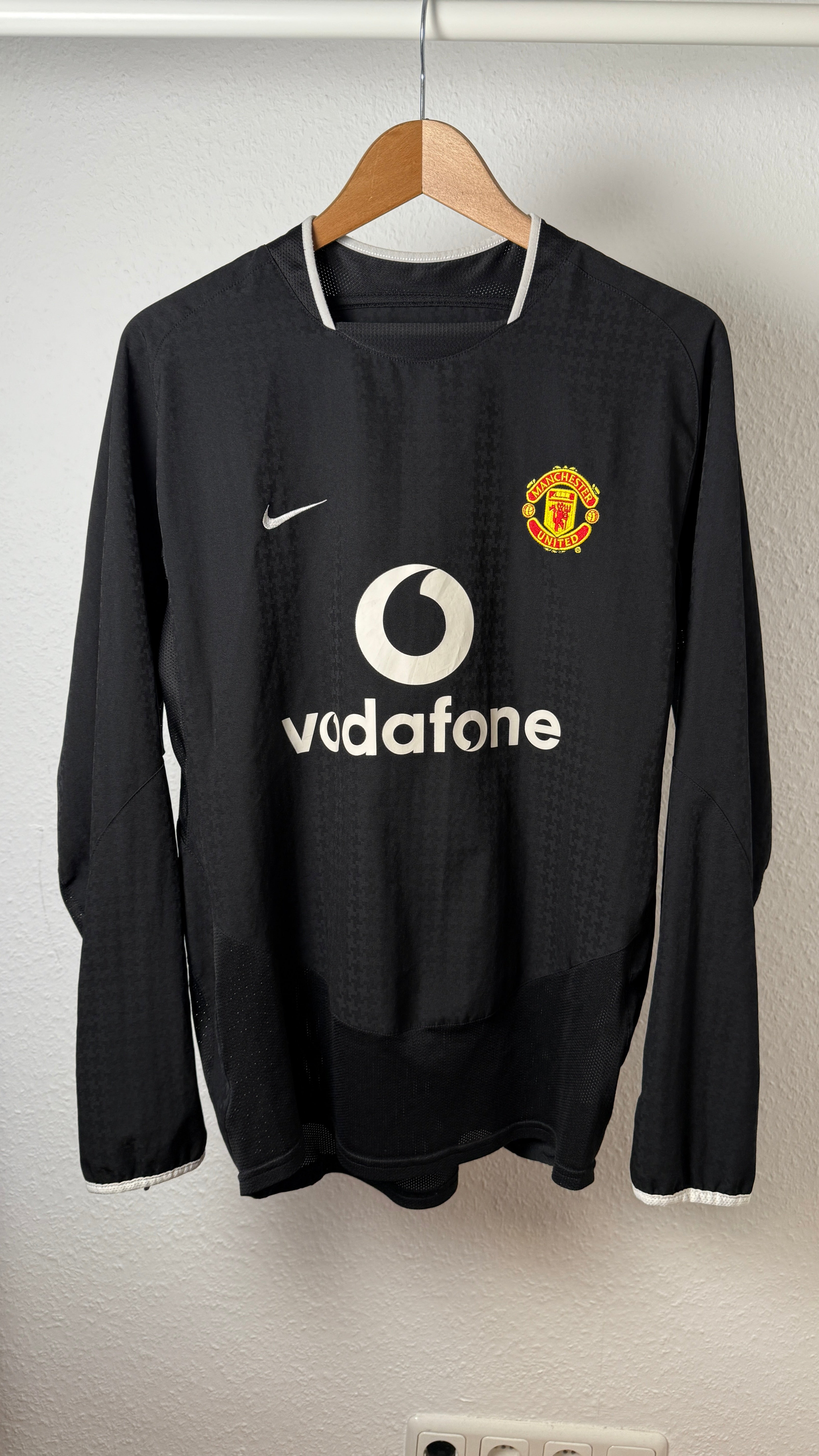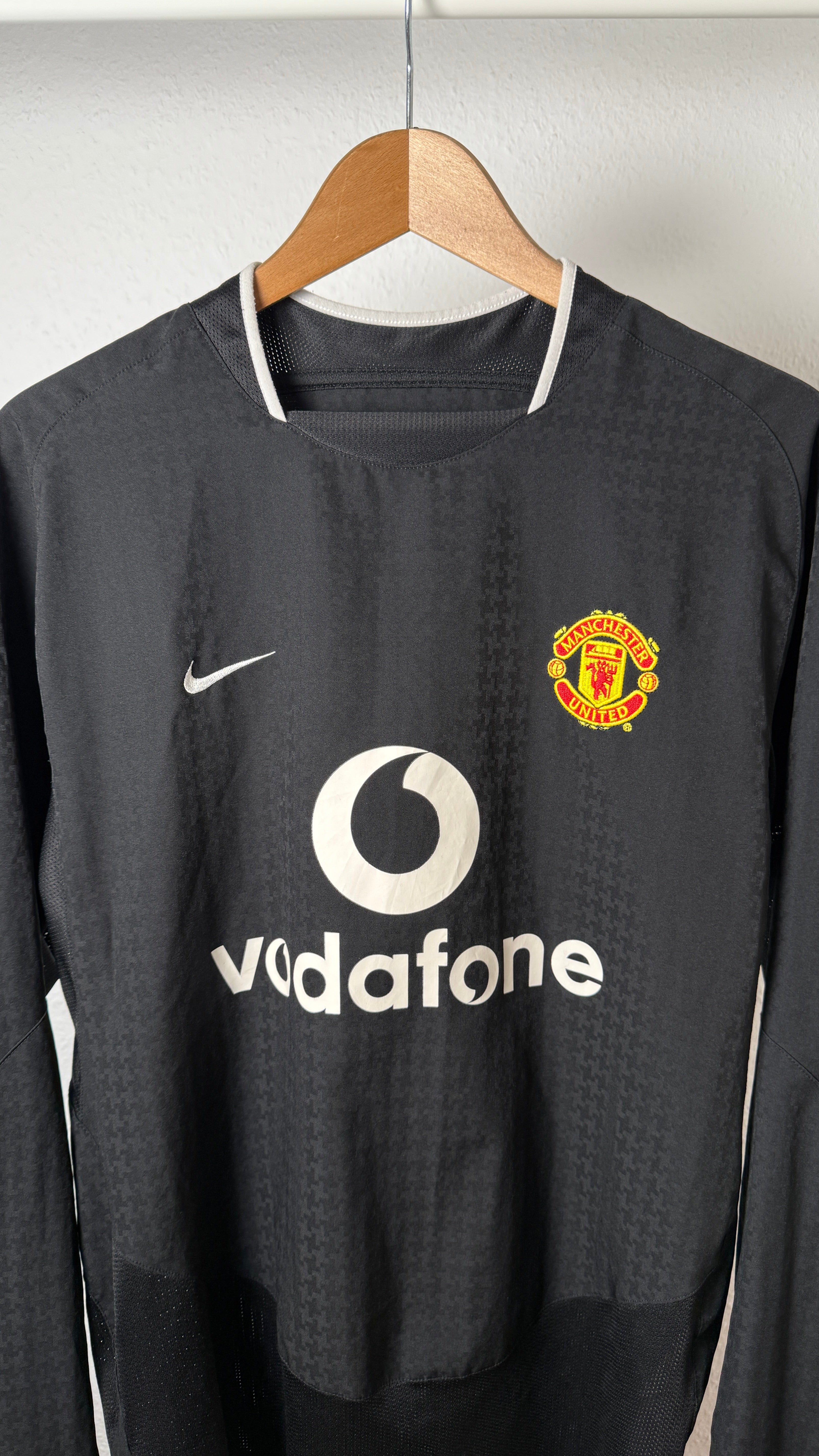 BESONDERHEITEN – Seltenes Langarm-Auswärtstrikot von Manchester United aus der Saison 2003–05 mit dem Flock von Cristiano Ronaldo #7 – aus seinen frühen Jahren in England. Klassisches Nike-Design mit Vodafone-Sponsor, getragen in der Anfangszeit seiner Weltkarriere. Ein Highlight für Sammler und Ronaldo-Fans.
