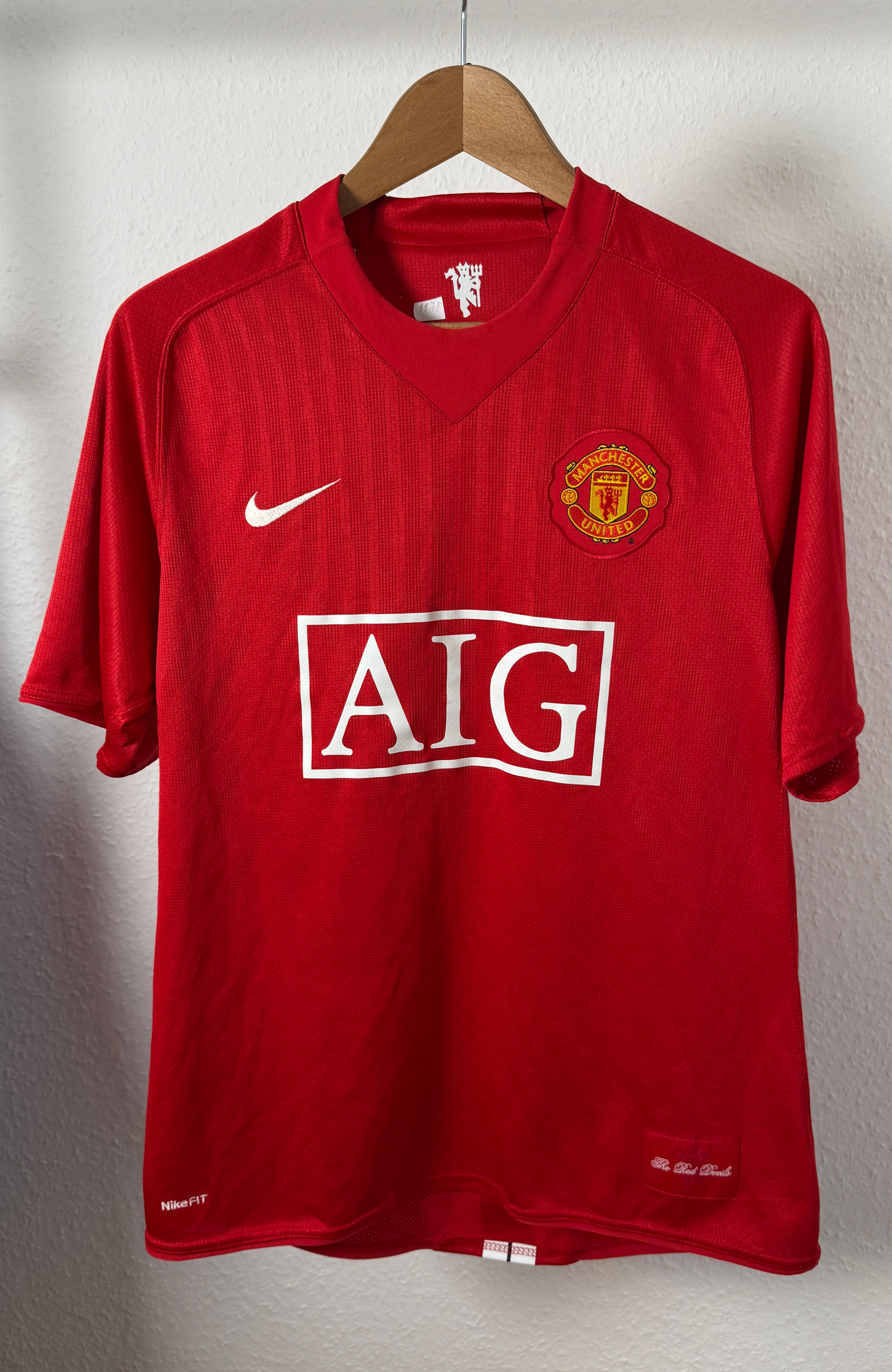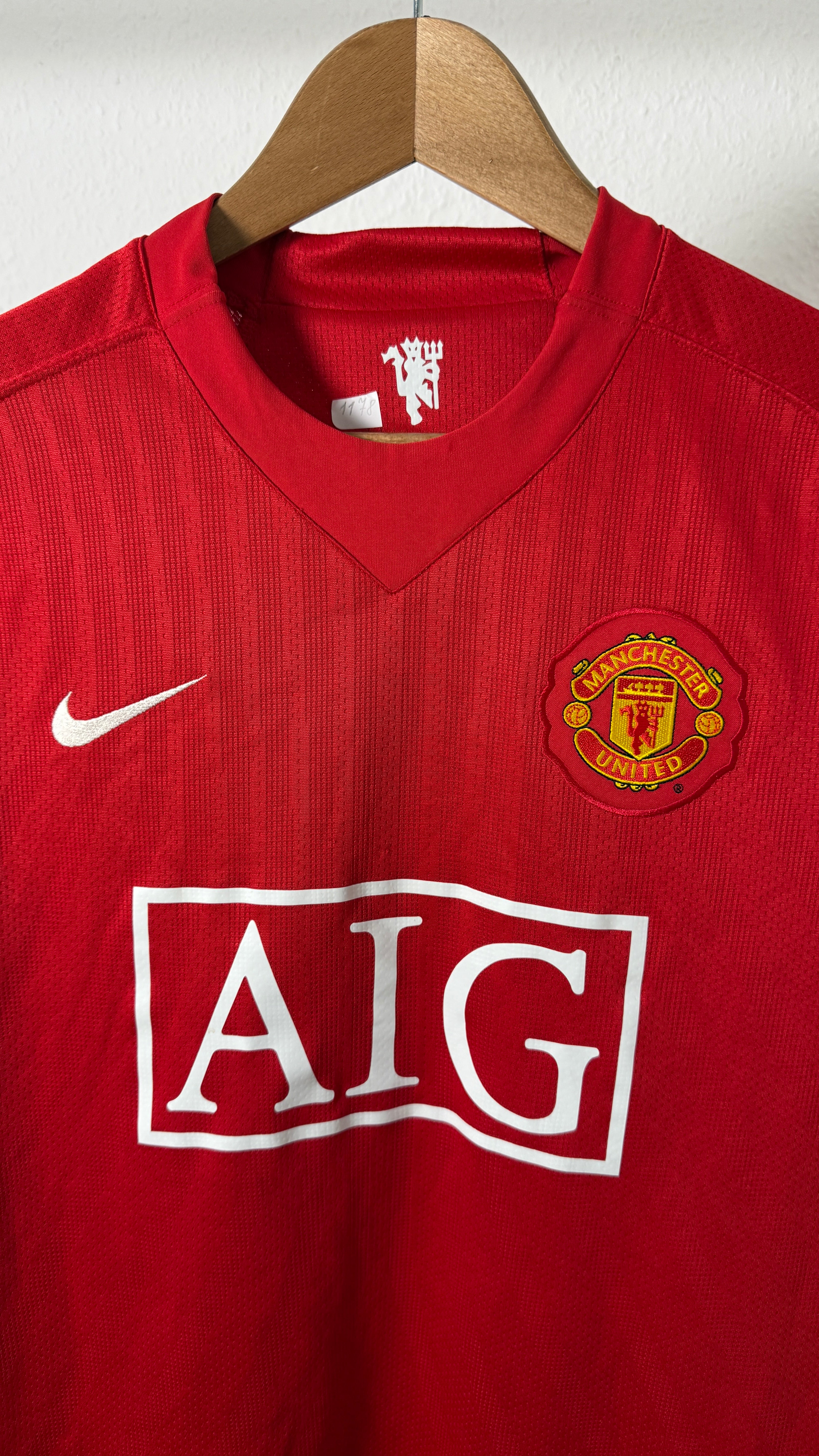 BESONDERHEITEN – Kultiges Manchester United-Heimtrikot aus der Saison 2007/08 mit originalem Cristiano Ronaldo-Flock (#7). Klassisches Nike-Design mit AIG-Sponsor aus der legendären Saison, in der United die Champions League gewann. Sehr begehrtes Sammlerstück.