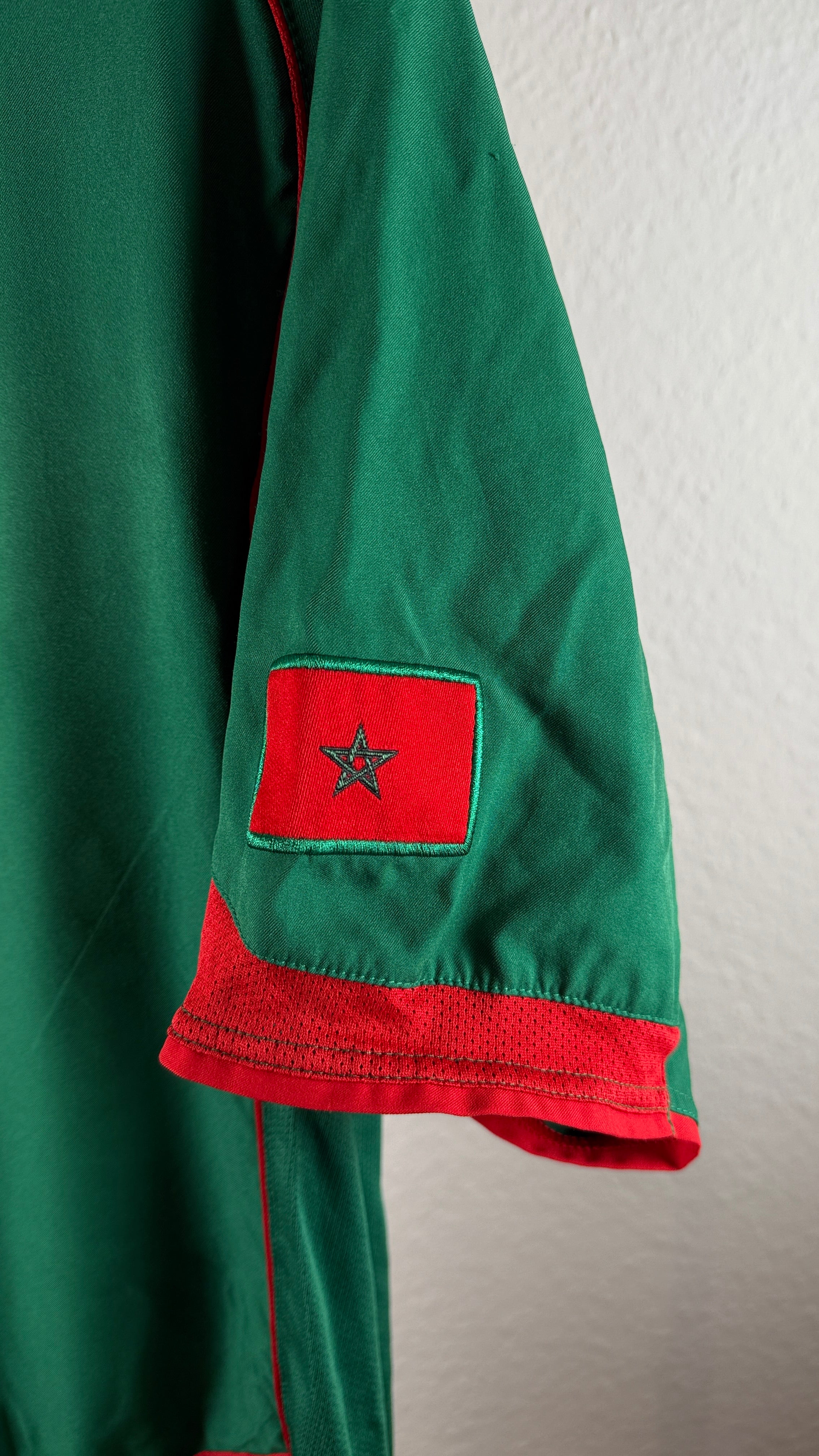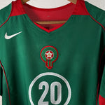 • BESONDERHEITEN – Seltenes Heimtrikot der marokkanischen Nationalmannschaft aus der Nike Total 90-Ära (2004) mit originalem Flock von Mustapha Hadji #20, dem marokkanischen Star der 90er und frühen 2000er. Klassisches rotes Nike-Design mit weißen Details – ein wunderschönes und seltenes Sammlerstück für Fans afrikanischer Nationalteams.