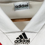 Originales Heimtrikot des VfB Stuttgart aus der Saison 1992/93. Legendäres Adidas Equipment-Design mit auffälligen roten Schulterstreifen und klassischem „Südmilch“-Flocksponsor – ein Stück Fußballgeschichte aus den frühen 90ern. Auf dem Rücken prangt der markante „Stuttgart“-Schriftzug.